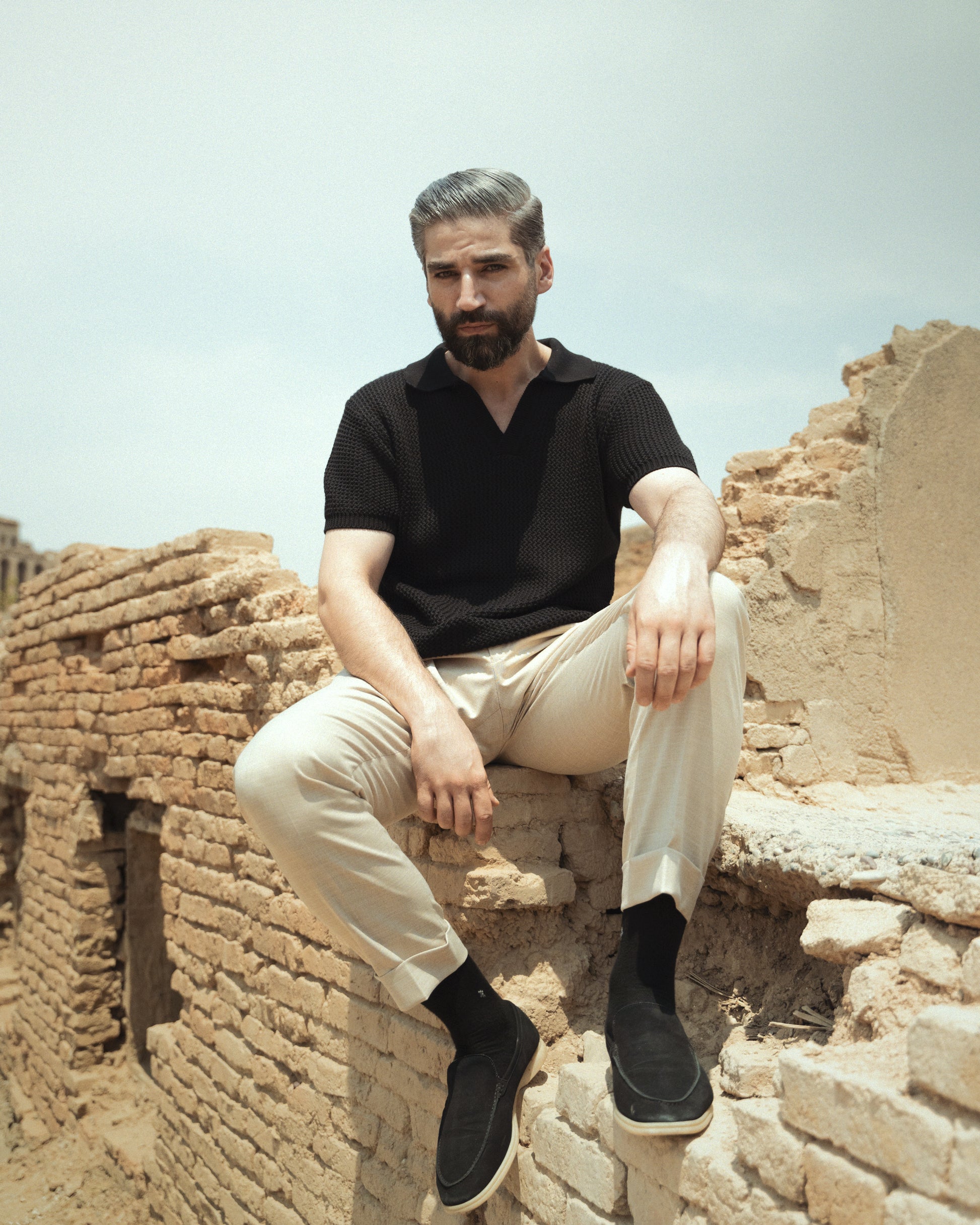 Neckline: Refined V-neck design with clean finishing